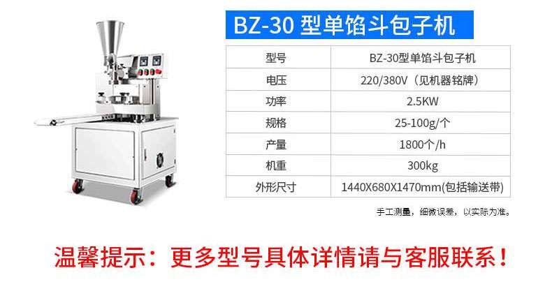 生產品種多樣化,可生產各種不同餡料的包子,酥餅等產品;對面粉的質量要求不高,可做發面,老面等工藝,且適合各種工作場所。本機提供免費上門培訓指導、安裝、調試、面點工藝傳授。