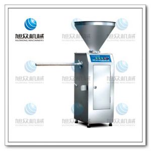 XZ-I小型自動定量灌腸機該機使用優(yōu)質(zhì)不銹鋼制造,符合食品機械的要求,只需1人操作,特別適合中小型肉食加工廠使用,以各種畜禽類肉糜為原料的香腸、火腿腸、熱狗等,可以灌制定重量單腸,也可連續(xù)灌制長腸,單腸重量在50-1000克之間,有刻度連續(xù)可調(diào),定量準確,誤差<2%,料斗一次裝料57升。特點是連續(xù)作業(yè),加料時不需停機,生產(chǎn)效率高,每小時達100-500千克,工作結(jié)束后清洗方便,整機重量僅130千克,移動方便,機腳可調(diào)。