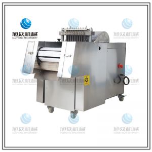 本機性價比高,模擬以手工切斷,切塊的原理采用“變速機構,自動送料”的結構研制而成。無損耗,采用特殊刀具刀塊,自動加厚履帶輸送,避免了切塊的危險性,使用安全性較高,切斷過程中不產生廢料,很大程度的保護了您的利益,節省人工,一機可抵多人工作,每小時可剁切600公斤,大大提高生產效率。廣泛用于大中小型食品加工廠、集體食堂、屠宰場、肉聯加工廠、超市等。適用于雞肉、鴨肉、魚,中小型動物骨頭、冷凍肉、鮮肉、凍雞、雞腿等帶骨肉類,可根據需要剁塊、段、條等,大小可調。