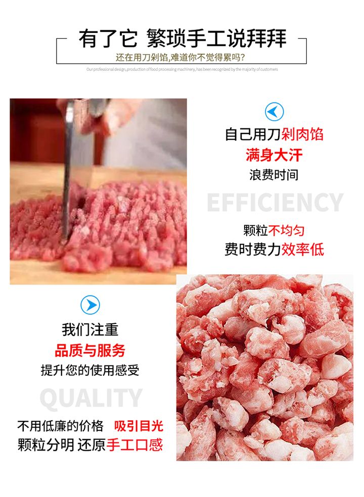 XZL-22A絞肉機吸取同行之優點,改進新型絞肉切肉機械,它能切豬肉、羊肉、牛肉、魚及其它各種肉類、所切肉片厚度適中切片效率高,是餐廳、賓館、酒樓、單位食堂等絞肉切肉的理想機械,該機外形獨特,操作方便,維修簡單,工作效率高,在同行業中處領先地位,與食物接觸部分均采用不銹鋼制造符合食品衛生標準。