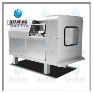 將肉塊、脂肪等主要原料,切割成用戶所需的肉丁,調整刀柵的尺寸可切出肉絲、肉片、肉丁。尺寸的大小,由刀柵中刀片數量來決定。