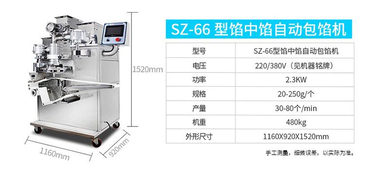 SZ-65型多功能包餡機,可生產豆沙、蓮蓉、五仁餡等較干餡料的包餡類產品,制出的產品餡、皮比例可任意調整,制品大小統一,外形美觀。